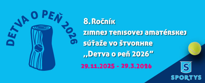 29.11 začíname 8. ročník zimnej tenisovej amatérskej súťaže vo štvorhrách DETVA O PEŇ 2026.